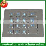 16 Keys Vandal Proof IP65 Metal Kiosk Illuminated Numeric Keypad