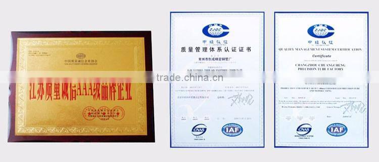 employees.Cold drawn and cold rolled precision seamless steel pipes and tubes are our main products,for which we have more than 10 years experience.Meanwhile we have specialized machining equipment,strong technical strength and advanced technology and so on.Our quality is ensured and we were certified to ISO 9001-2008 Certificate and got "Jiangsu quality creditAAA grade brand enterprise" title.