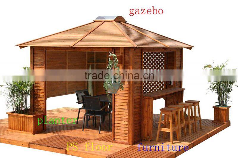 3. We can provide you other imitation wood product, like: pet house, furniture, shower room panel, spa steps, decking tiles, outdoor Planter ,spa skirt board and gazebo.