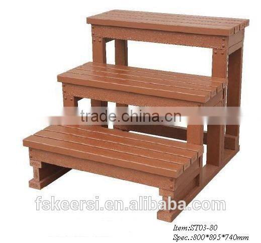 The Spa steps are made of PS panel produced by polystyrene, which was a new Eco-friendly material and can replace the wood. It has many good properties, like: