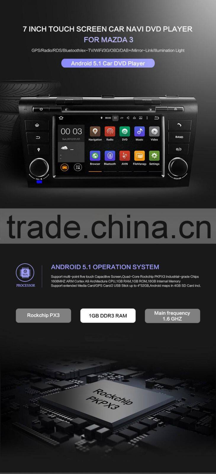 Home > Products > for Mazda series > Winmark Newest Android 5.1 7 Inch 2 Din Car Audio DVD Player Stereo Quad Cord GPS BT Radio RDS TV For Mazda 3 ( 2004-2009 ) 7095