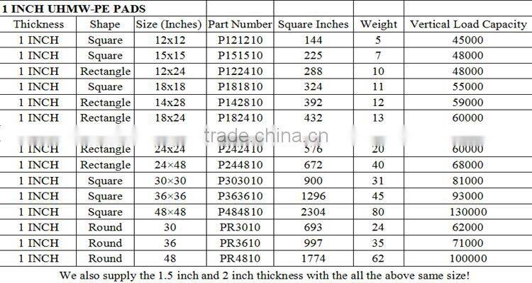HDPE/UHMWPE high abrasion resiatance crane leg support pad is an alternative to wood pads due to their superior characteristics and performance which allows them to last longer.