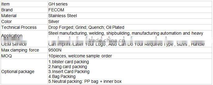 Home > Products > F-Clamps > FECOM Heavy Duty Stainless Steel Quick Release Clips for Manufacturing Automation GH Series