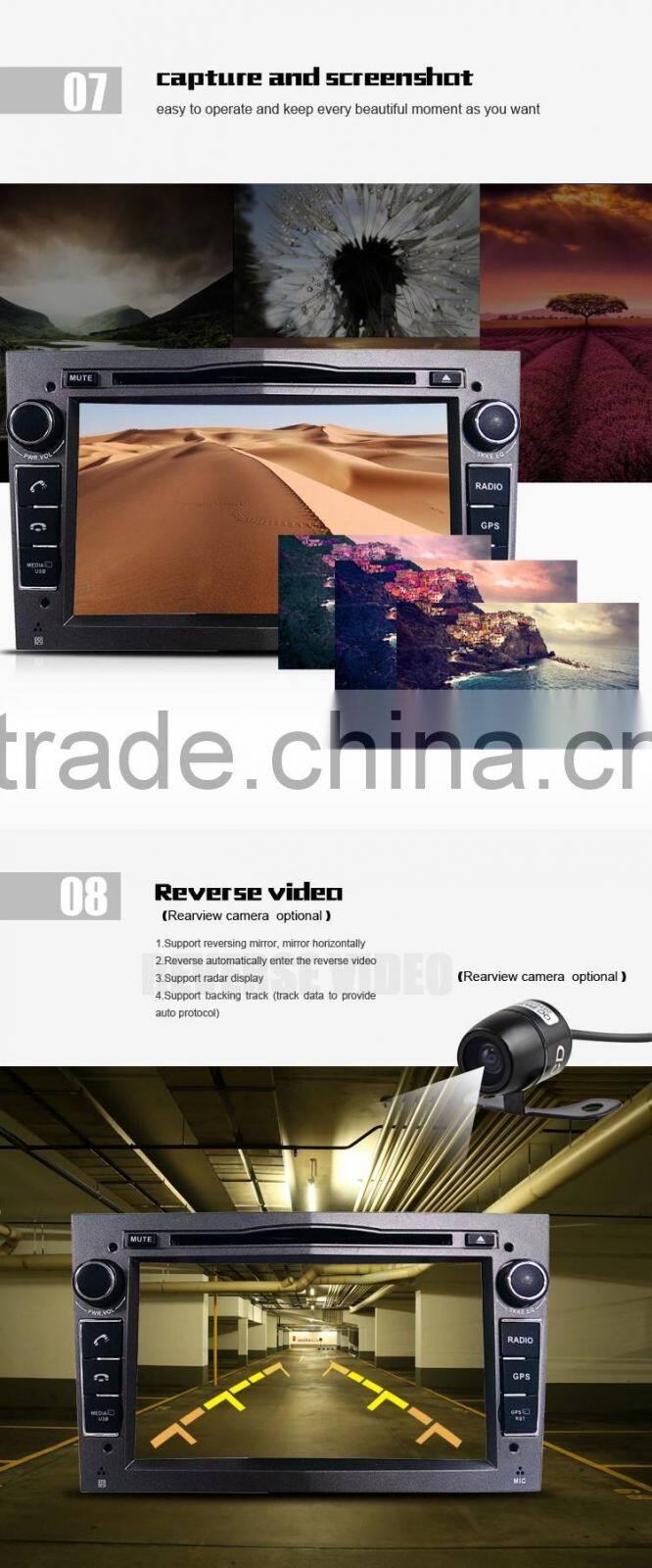 - Support Rear View Camera input and reverse trigger Control