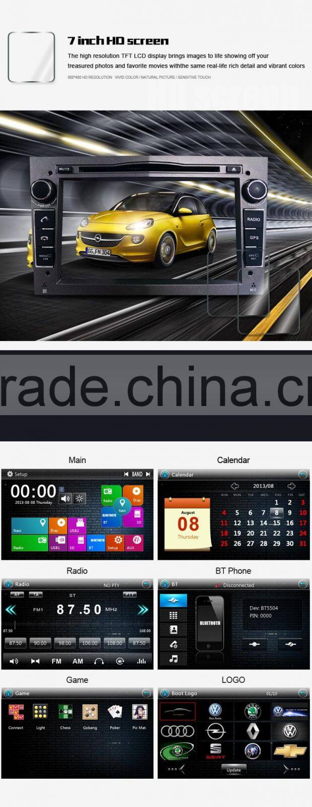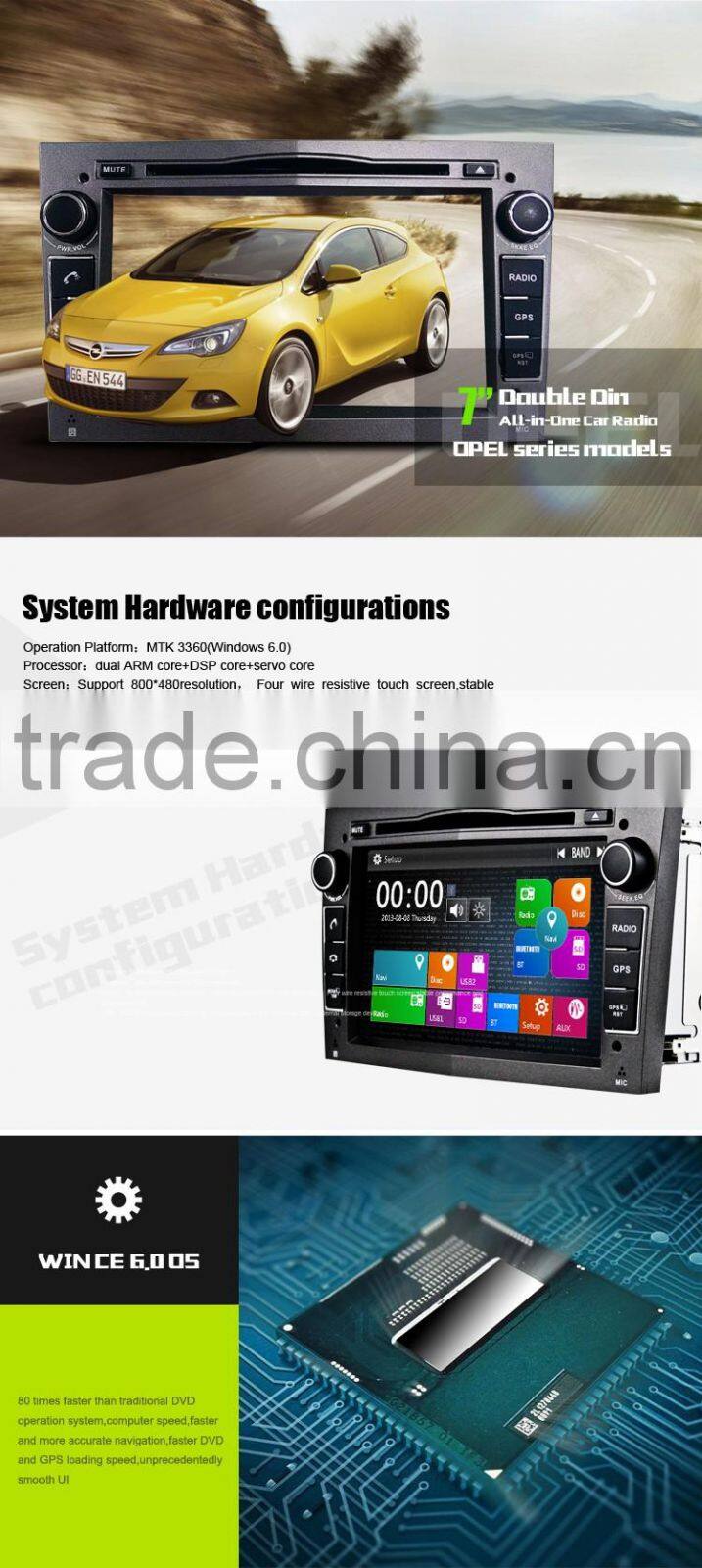 7inch Double Din Auto Multimedia for Opel With GPS/BT/FM/AM/RDS/TV/VMCD/3G/GAMES/etc