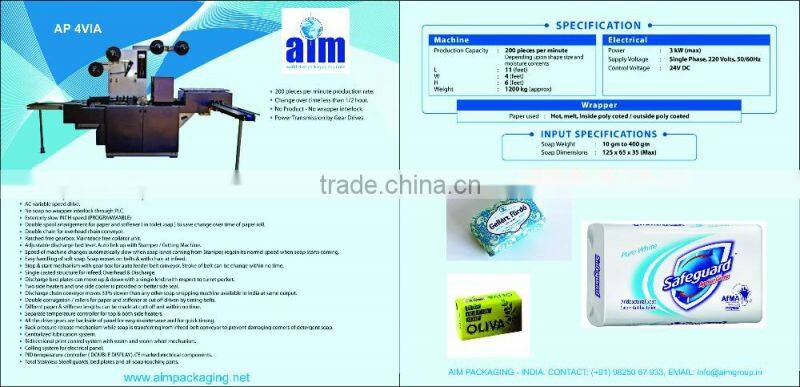 This machine find its application in toilet soap, detergent soap and laundry soap wrapping. Soaps can be packed in poly coated paper along with the paper stiffener. Using paper stiffener is an option.