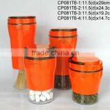 CP085B 3pcs Glass Jar Set With Metal Casing and Rack