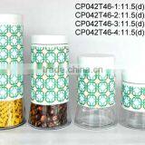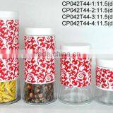 CP042T47 Round Glass Jar With Metal Casing Printed With Desin