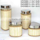 CP042SB3 4pcs Glass Storage Jar With Weaved Coating