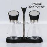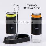 TW964B 2pcs Glass Oil Vinegar Bottle With Metal Casing and Plastic Stand
