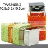TW624SB/2 2pcs Glass Spice Jar With Square Lid With Weaved Coating