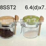 LB108SST2 Glass Spice Jar With Clip Lid and Wooden Spoon