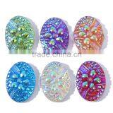 13*18MMmix Color Sew on Plastic Rhinestone ,oval Shape With Flower,resin Cabochon Beads