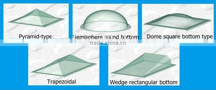 Roof daylighting can choose S, pyramid, dome type, flat type. Customer can choose single or double light shade.(also can be customized according to the customer demand).