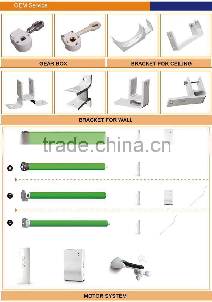 | Control System | Manual by crank handle; Motorized by switch/remote control; Both manual and motorized; Wind sensor control system; New~~Wireless control by mobilephone. |