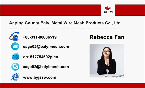Baiyi Metal Wire Mesh Products Co.,Ltd located in the well-known county for wire mesh development zone in south of Anping, Hebei province. Our factory professionally manufacture chicken cages, rabbit cages ,quail cages, pigeon cages, bird cages, dog cages.