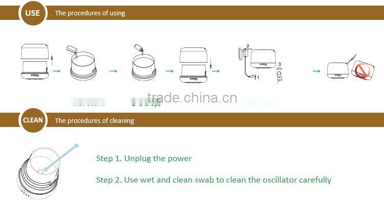 2.4MHz ultrasonic wave, spray micro mist along with the scent of essential oil.