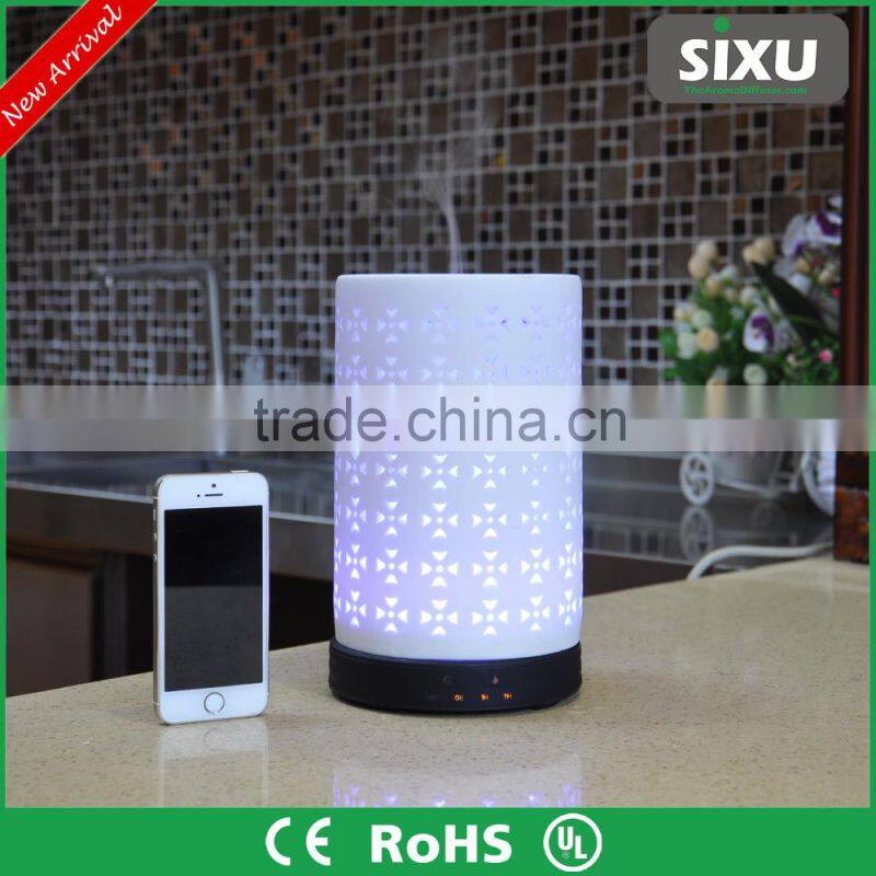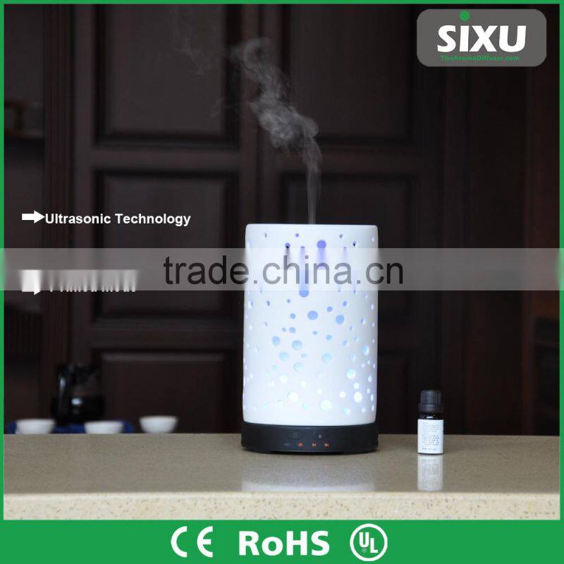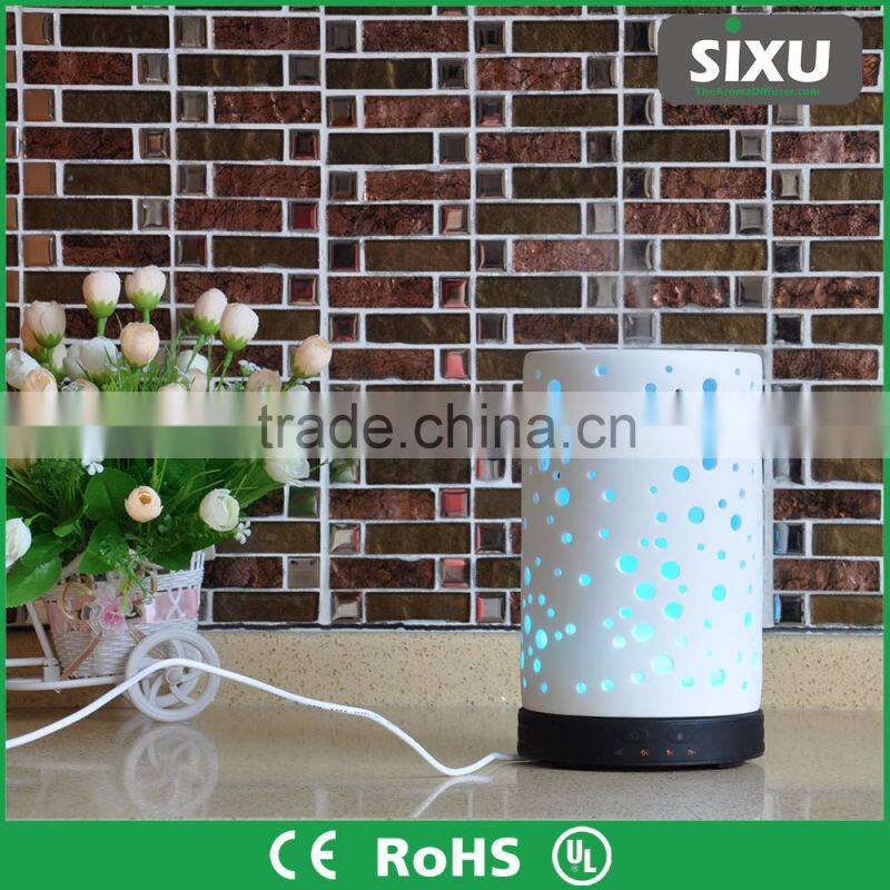 2016 Engraving Flower Ceramic Ultrasonic Aroma Diffuser Colorful LED