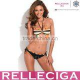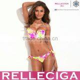 Wholesale Swimwear! RELLECIGA Stripe Pattern Push-Up Bandeau Top Sexi Hot Girl Bikini Model With Braid-Design Ties