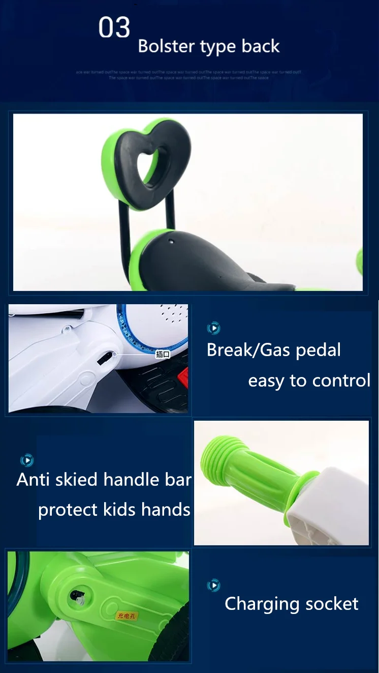 2016 New Kids Motorcycle ,baby Electric Bike,with Led Light,braking and Forward Function