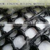 High Strength HDPE Drainage Geonet with high density polyethylene (HDPE) as raw materials, through special process, the two root rib in a certain distance and Angle arrangement, staggered at the intersection of double rib form drainage channel. Has high tensile strength and compressive strength, rib between a drainage channel in the higher load is out of shape not easily, it can prevent geotextile embedded geotextile net core, ensure drainage unblocked.