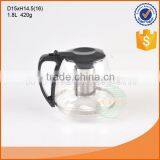 Hot Selling 1800ml Clear Borosilicate Glass Tea Pot With Plastic Lid Handle and Strainer