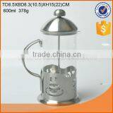 Hot Selling 600ml Glass Cafetiere With Metal Surface Lid and Handle Quality Choice
