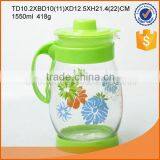 Hot Selling 1550ml Glass Water Kettle With Plastic Lid and Color Decal