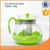 Whole Sale 1650ml Borosilicate Glass Tea Pot With Plastic Lid Handle and Strainer