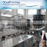 The tomato sauce filling machine integrates washing,filling and capping into one unit,can be used for different kinds of non gas drink production.The advanced micro -negative pressure filling technology is used in this machine .The filling is quick ,steady and accurate.The beverage feedback system is well designed ,the gas can be fed back separately,has no contact with beverage reduce the second timepollution and oxidation .