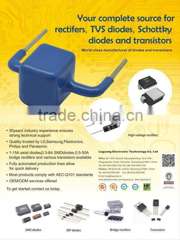 1. Your complete source of TVS diode, schottky diode, super fast recovery rectifier and transistors back by 50 years experiences!.
