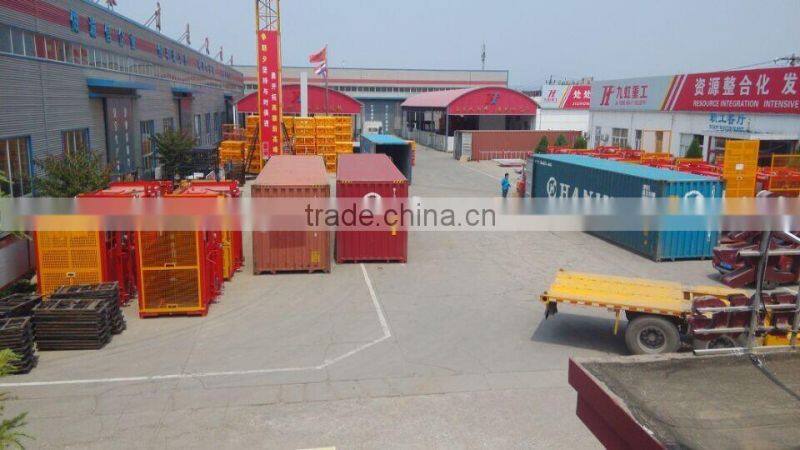 There are Hoist-mounted frames combined with guard-rails on the two sides of the platform, and hoist, overload device, and safety lock all ar assembled on the frame.