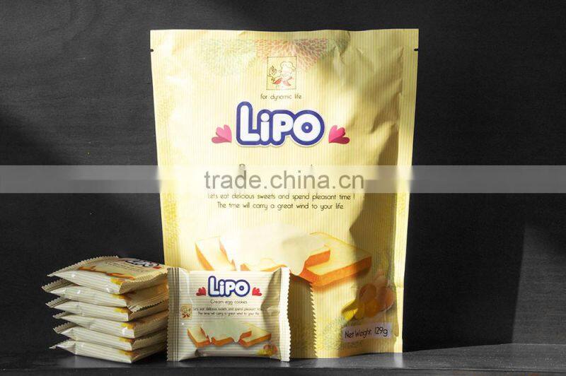 Best Sale Baked Wafer Cookies Biscuit Snack LIPO 135g Cream Egg Coasted Bread With HALAL, ISO, HACCP Certification
