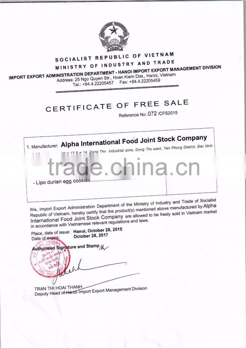LIPO 210G/Bag Durian Egg Cookies for Breakfast With HALAL, ISO, HACCP Certification