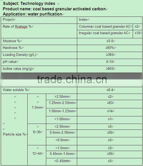 Activated carbon main application: the product adopts high-quality coconut shell carbonized materials by the high temperature steam activation and refined, its characteristics: high adsorption capacity, long service life, high mechanical strength, lower ash and easy to wash, the quality of effluent is good , mainly used for drinks, beer, high pure and thermoelectric pretreatment devices.