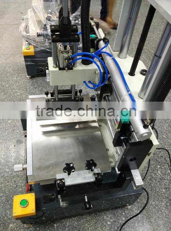 Desktop cd screen printing machine with vacuum worktable Application It is suitable for printing different material flat items such as paper/textile bag,mosue pad,glass,aluminum/metal board,PCB circuit board,plastic film,pp/pet/pc/pvc sheet,warning sign,keyboard,ceramic tile,leather bag,medical box,aluminum box,wooden board,arylic board,carton sheet.....and so on Feature 1.Microsoft computer program controller,Auto 4-digit counter built-in Technical Parameter 1.Max printing area: 200*300mm Machine pictures