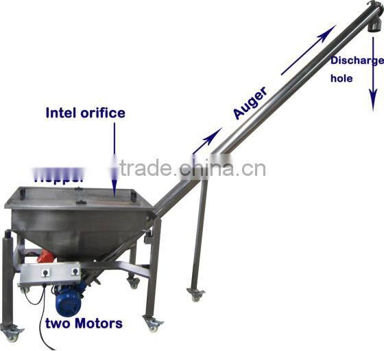 This Vibrating Screw Charging Machine can convey sorts of material. Combined with the package-machine of our company, it can do material situation tracing, also can be used separately. Complete machine made in stainless steel, except for the electrical machine, gearing, and the framework.