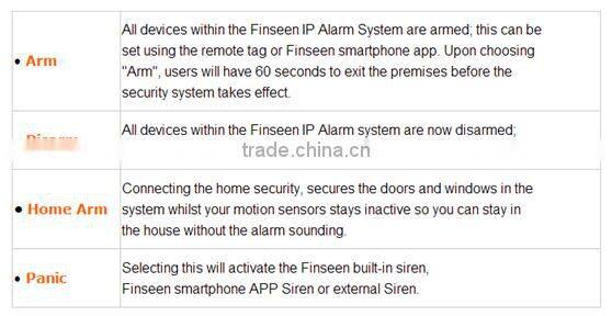3) Operate Alarm panel Away Arm,Home Arm, Disarm, Emergery Alarm through Internet.
