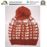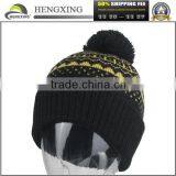 100% Acrylic Beanie Jacquard Knitted Winter Hat With Big Pom Pom