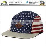 New Arrival Cotton Flat Brim USA Vintage Flag 5 Panel Hat With Leather Patch and Leather Strap
