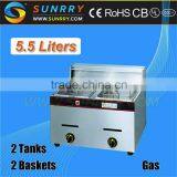 2013 Quality 2 Tanks 2 Baskets Gas Deep Fryer 5.5 Liters Per Tank Fryers Price (SY-TF5B-1 SUNRRY)