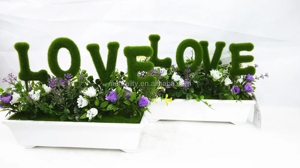 2016 Newest Design Artificial Moss Letter Mini Potted Plant With Wholesale Price