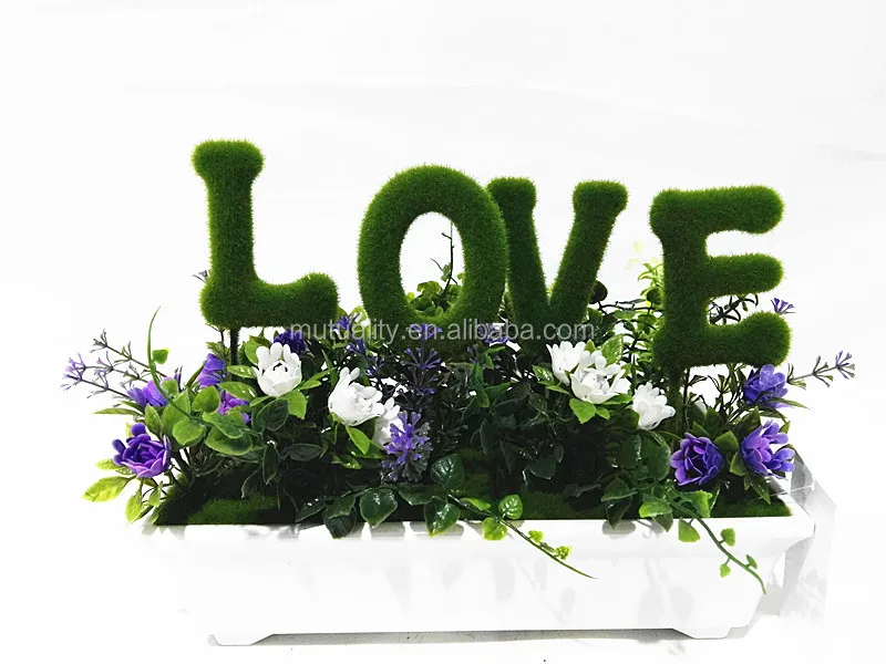 2016 Newest Design Artificial Moss Letter Mini Potted Plant With Wholesale Price