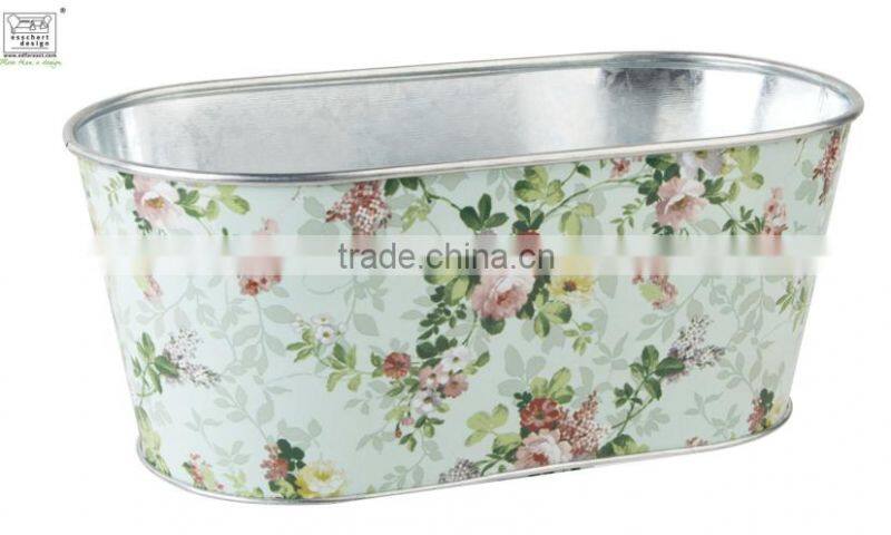 Zinc galvanized flower pot with barcode sticker sales packing;