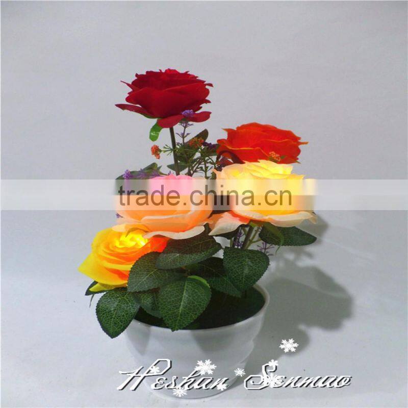 Home Garden Artificial Led Rose Flower Bonsai With Led Light With Battery