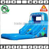 pvc material adult size and outdoor dolphin playhouse, big cheap inflatable water slide with pool for sale