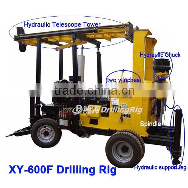 The above three kinds all use the latest XY-600 host, hydraulic stabilizer legs, foldable drill tower of hydraulic automatic rise and fall, greatly improve the working efficiency, reduces the labor intensity.