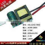 1*3w 9-18V 620mA Led Bulb Driver Made in China