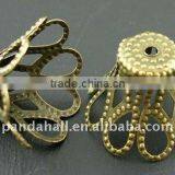 Brass Bead Caps Jewelery Findings Wholesale, Lead Free, Red Copper Color, Flower(J0K5R042)