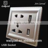 China Suppliers Wallpad Metal110~250V Electrical Universal Socket With Usb Charger Ports USB Power Wall Light Socket eu uk Quality Choice